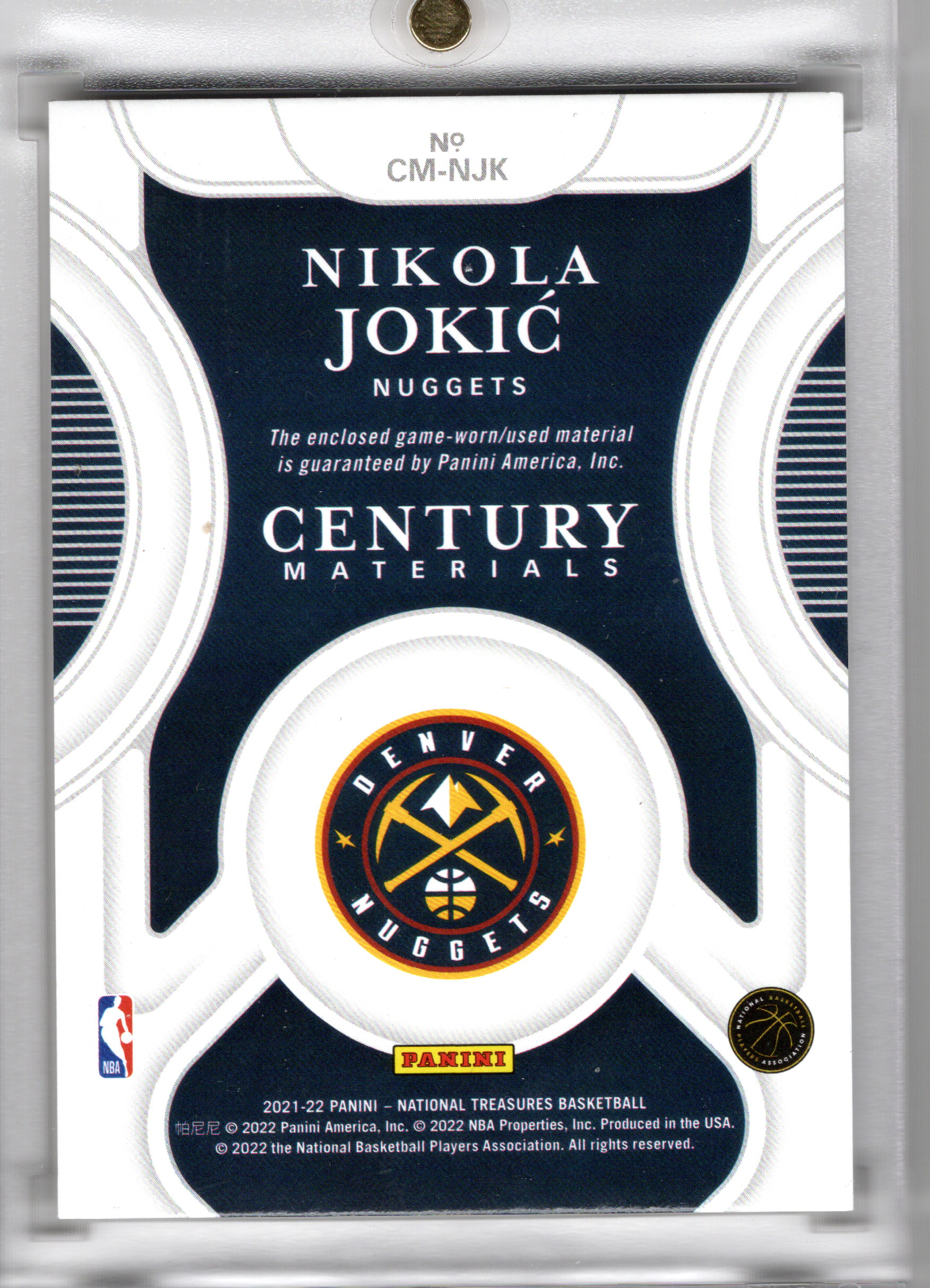 2021-22 NBA Panini National Treasures Patch Game Worn Nikola Jokic /25 MVP Nuggets
