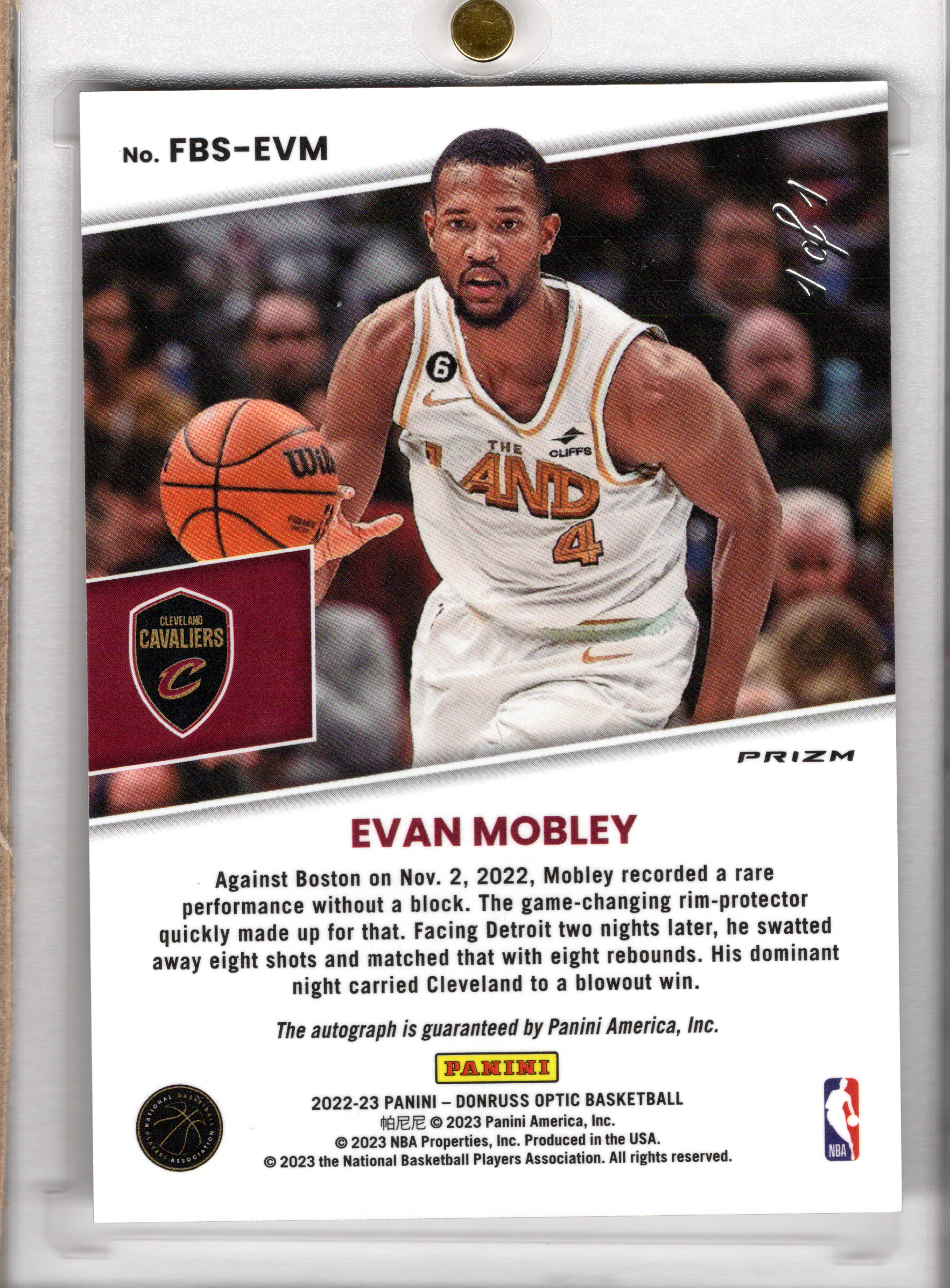 2022-23 NBA Panini Donruss Optic Fast Break Auto Autograph Black Evan Mobley 1/1 One of One Cavs