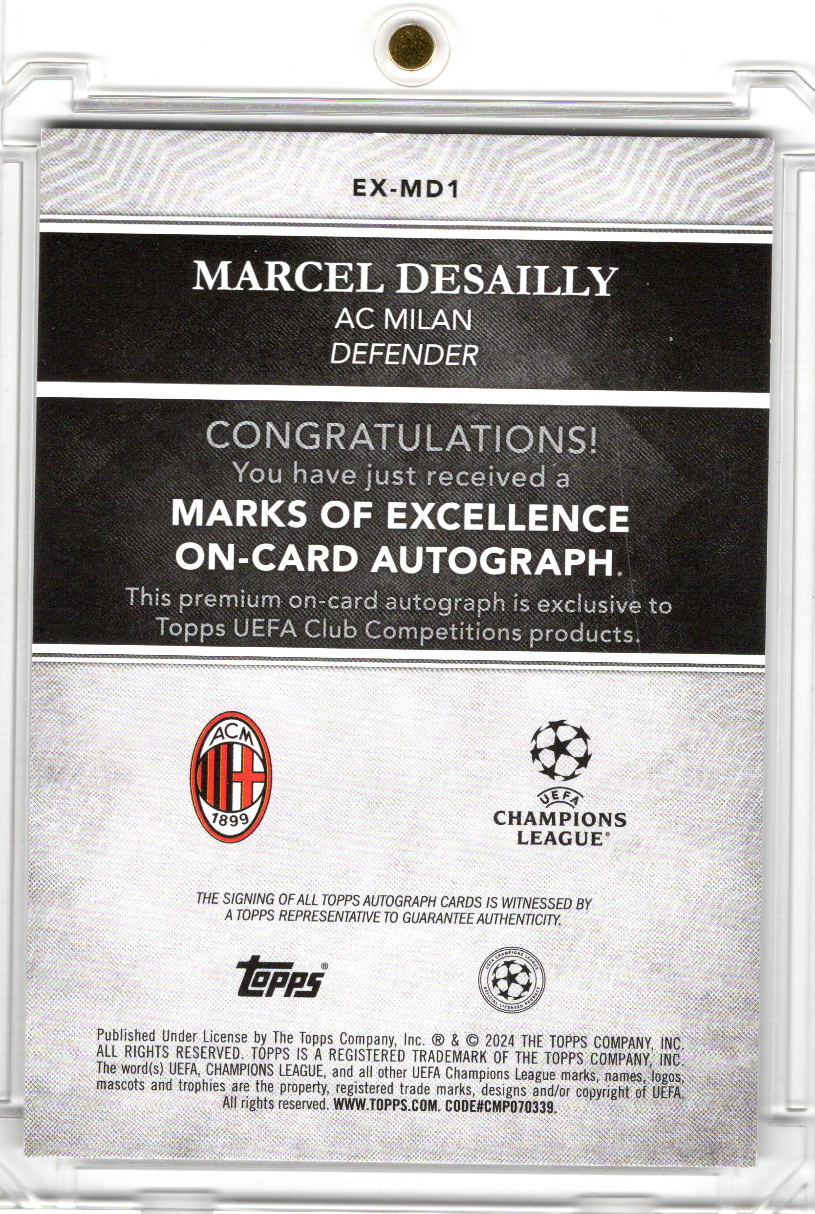 2024-25 Topps Finest UCC Marks Of Excellence Gold Auto Marcel Desailly /50 AC Milan