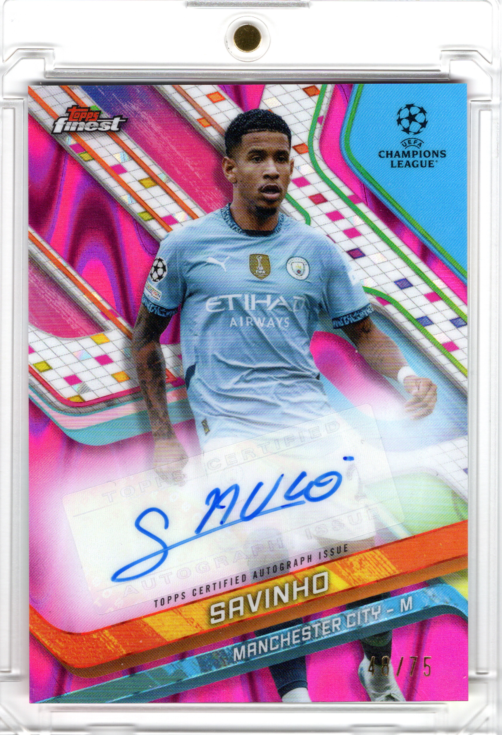 2024-25 Topps Finest UCC Pink Lava Auto Savinho /75 Manchester City